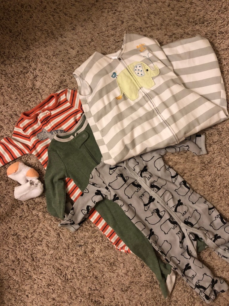 i wanted to pack one sleeper for each night away since hud likes to drool and get them pretty wet after one use. one of the sleepers has built in mits but the other two did not, so i packed socks for those two nights since he has a tendency of scratching his face with those sharp nails of his. hud also sleeps in a sleep sack every night (not the most aesthetically pleasing, but it gets the job done). he does not sleep with a paci or anything, so that category was pretty simple.