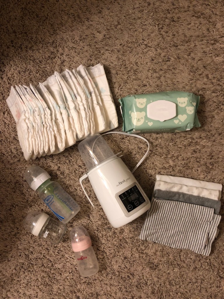 i exclusively breast feed my son, but i have a large supply of frozen milk that i’ve been slowly giving to my parents to store in preparation for this time away, so i did not need to pack the frozen milk since it was already at their place. but, i did need to pack a handful of bottles and the bottle warmer. also, within this category, i also added changing. my mom bought a large box of diapers to use, but i still packed a few for them to use if they wanted/needed. hud is quite the spitter upper, so i packed four burp cloths to make sure they’d have enough haha.