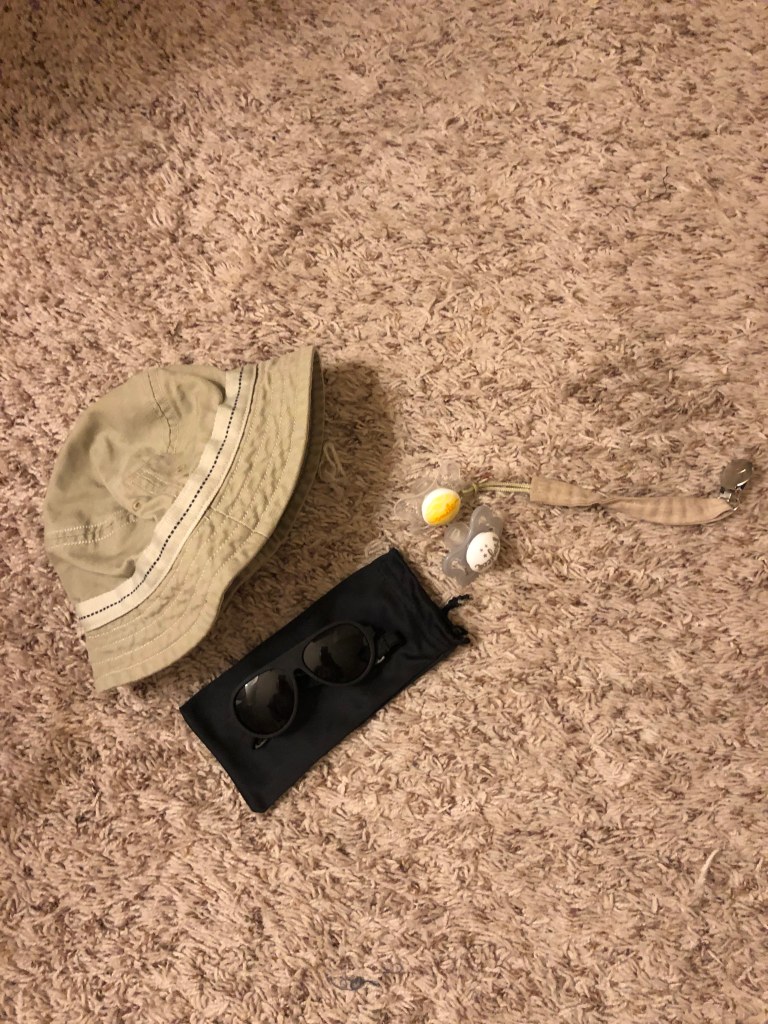 all the random other stuff i thought hud might need. my parents live on a lake and have a boat, so they specifically asked for his sun hat, and i added in his little sunglasses as well (mainly because they’re stinkin adorable hehe). i also added a trash bag for his dirty clothes. i sent with his activity mat too, but that was too large to pack into the bag.