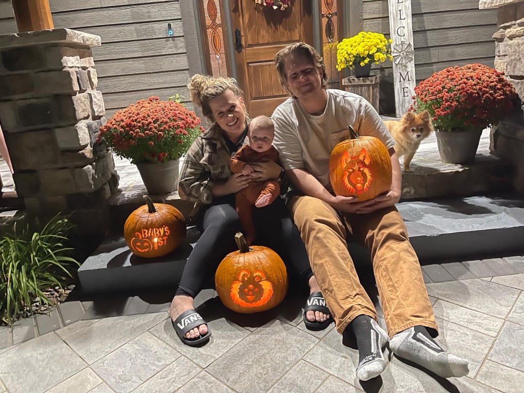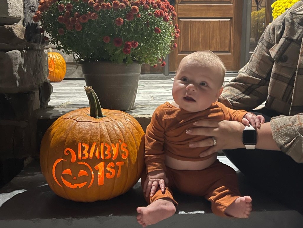we carved pumpkins. hudson mainly slept during the carving portion, but he still did get his own pumpkin carved for him by his uncle. can’t wait until he’s old enough to carve his own! it’ll definitely look better than mom’s carving 😉