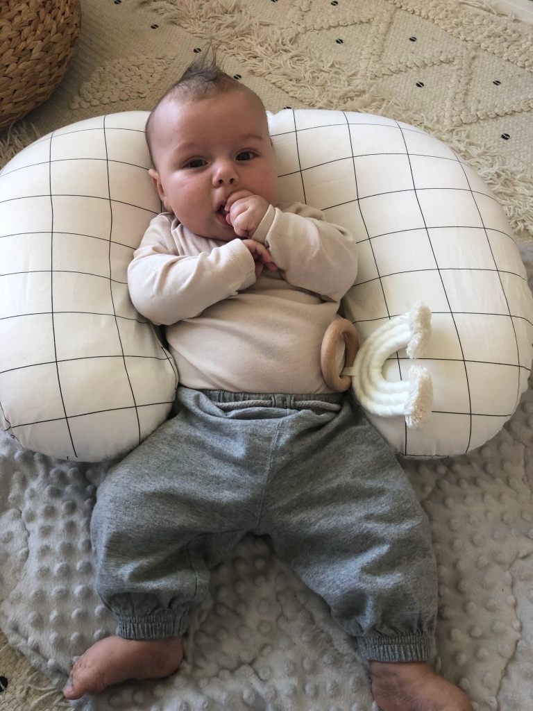 - onesie & leggings. it’s as simple as pairing any neutral onesie with any neutral pants. doesn’t matter if it’s gray, beige, black, white, etc. then, if one part of his outfit gets dirty and we need to change, we don’t need to change his whole outfit- just the part that’s dirty. his onesie is from h & m, and i believe his pants are carter’s.