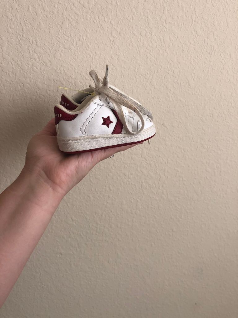the first item i scored was a vintage pair of converse for $3.50. they have a couple scuff marks and the laces are too big, but overall, this was a great find considering converse brand new are not the cheapest thing- even the baby ones.