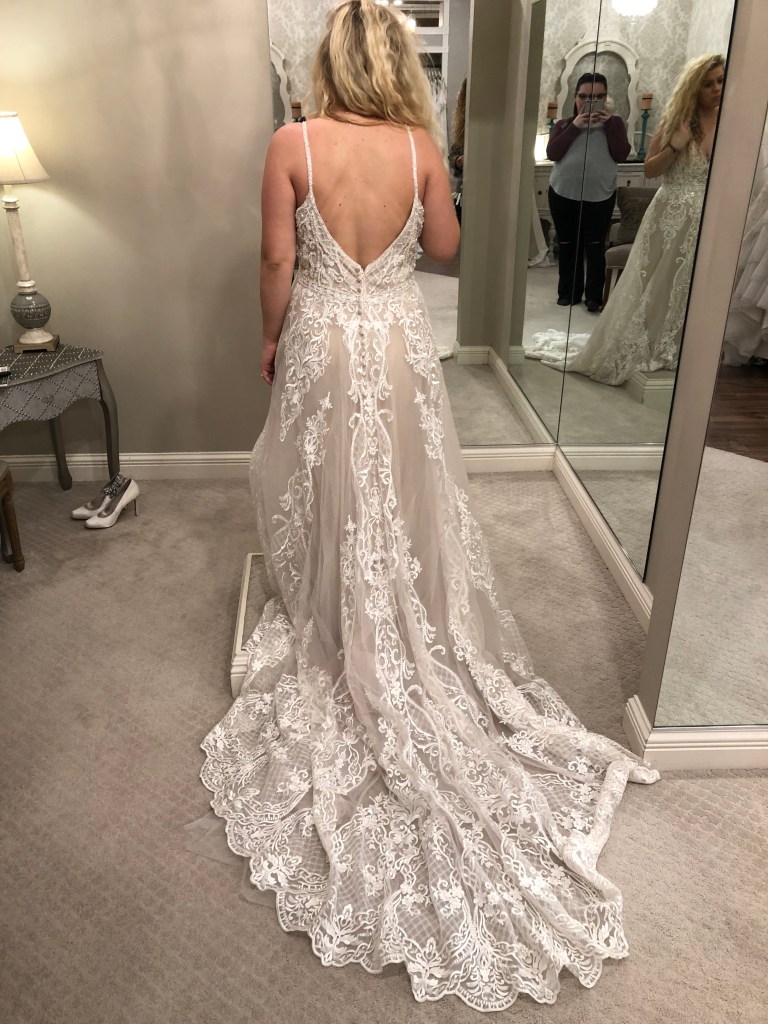the next dress is honestly stunning! i’m in love with the back of the dress and all the lace, but, with my body type/shape, i didn’t love the way it looked from the front.