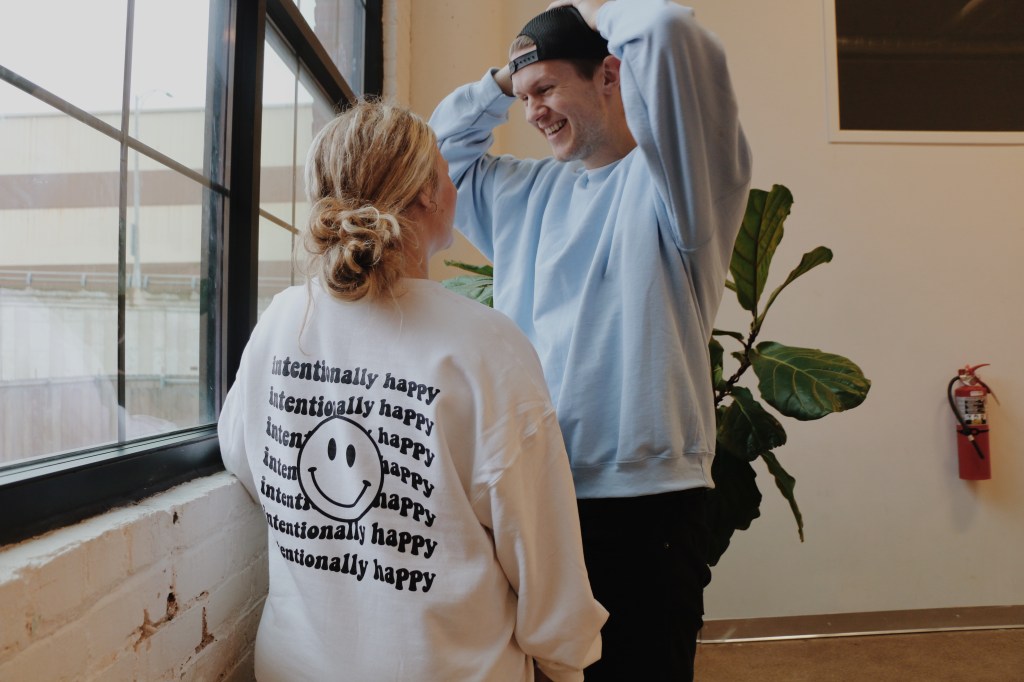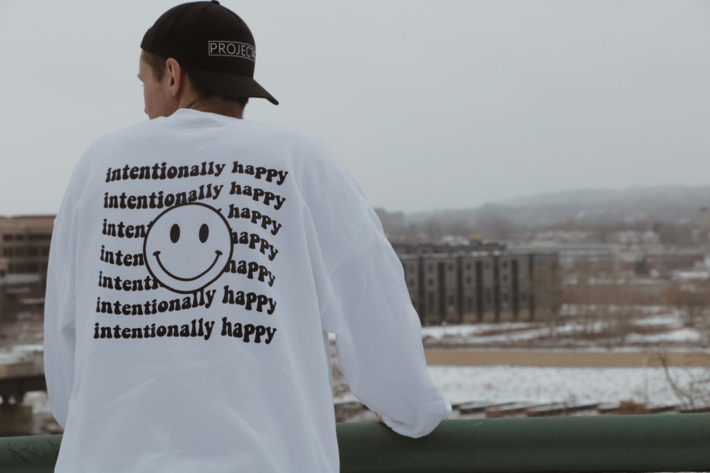 Now- intentionally happy. I love joy and smiling, so I knew I wanted a smiley face on the design. And in this day and age, it actually takes being intentional to be happy sometimes. When life is tough, being happy doesn’t always come easily.