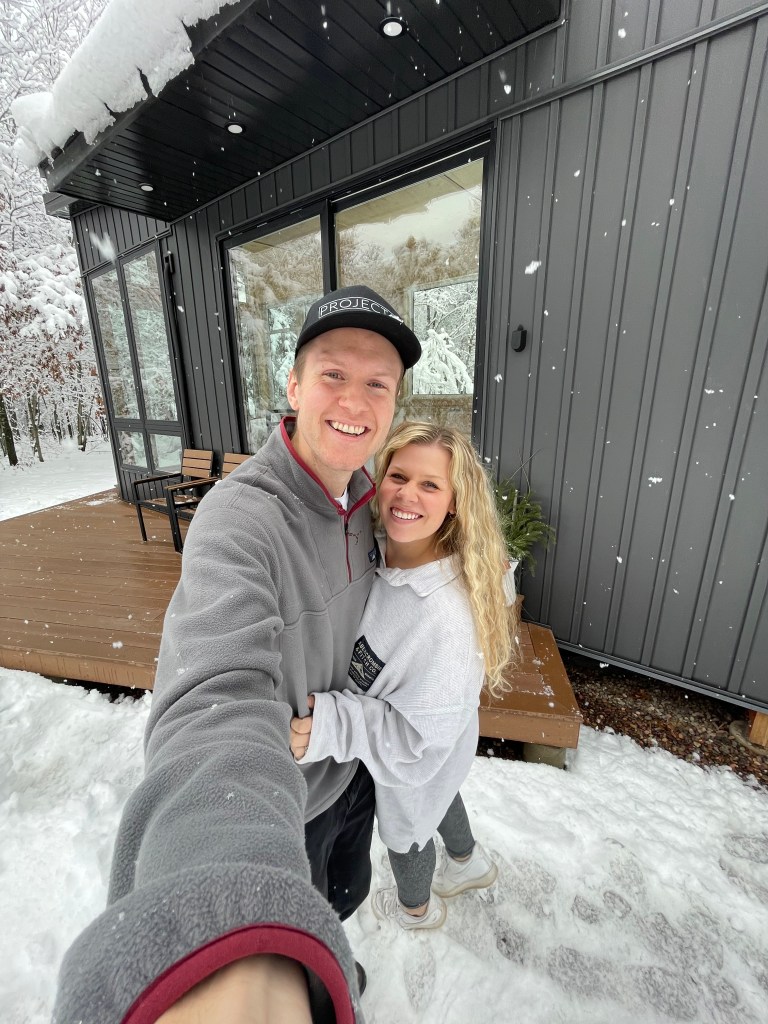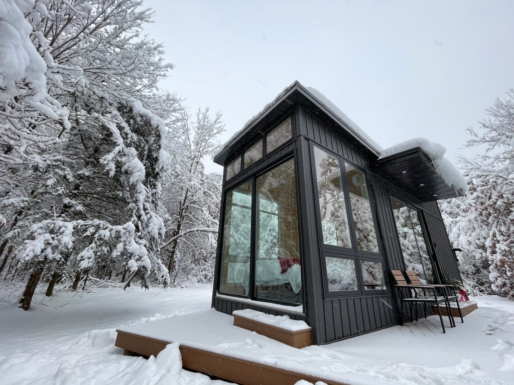 The tiny house is located in Mondovi, Wisconsin in the middle of no where. It’s hidden behind so many trees. The fresh snow made it extremely cozy! It’s super private.
