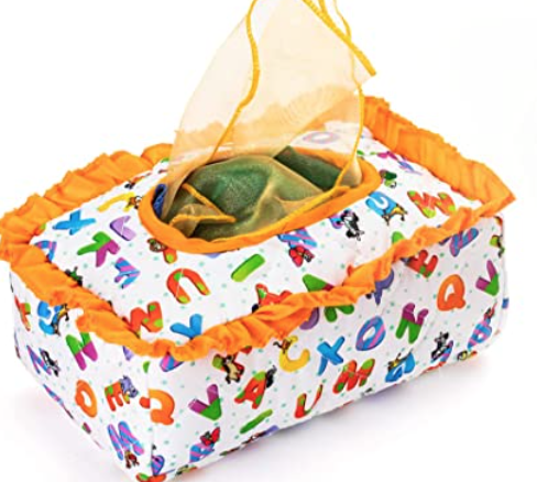 This is a great sensory toy for your baby! The fabrics they pull out are different textures, sounds, and colors. And the act of grabbing the fabric and pulling it out is a great fine motor skill for them to practice and learn.