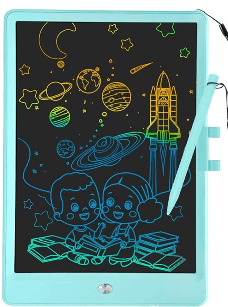 We are not the kind of parents who have iPads and excessive electronics for our toddlers- NOPE! But this pad!! This is under $15 and kids can draw on it and press the bottom button to erase it all to start over. This is a wonderful toy that keeps both my kids busy and entertained in the car. We currently have one of these but will be buying another one before our next family trip.